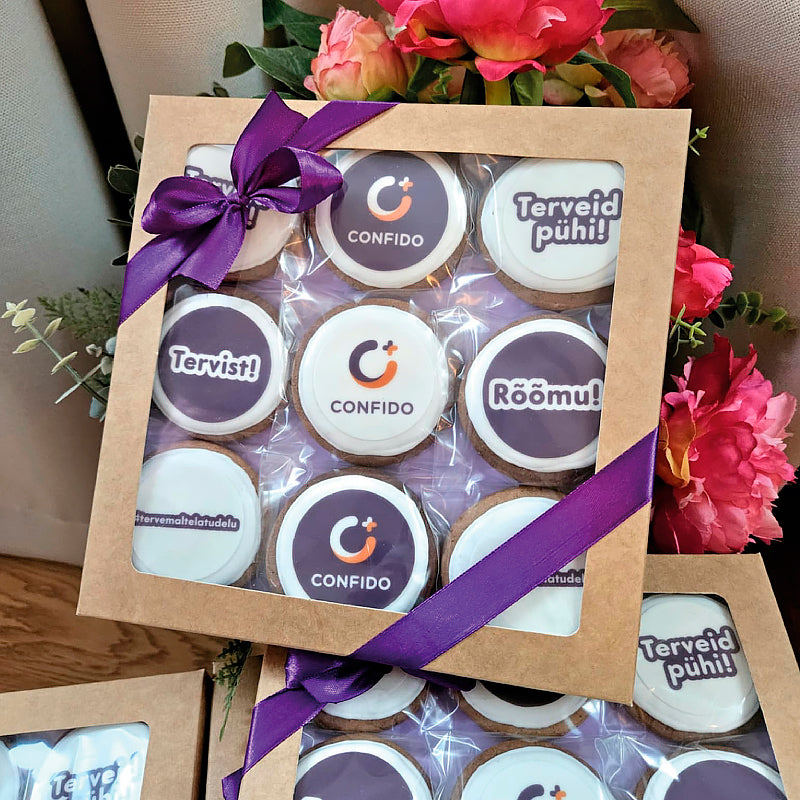 Magusad ja ilusad ärikingitused Teie logo ja sõnumiga. Firma logoga küpsised on teie visiitkaart. Selline väike lisand näitab suhtumist klientidesse, partneritesse ja kaastöötajatesse.